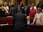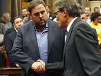 19.08 : Tras un aplauso de varios minutos, Oriol Junqueras acude a estrechar la mano de Artur Mas.