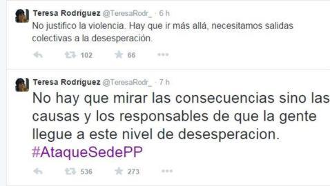 17.30: El eurodiputado del PP Pablo Zalba ha respondido a su compañera en la eurocámara Teresa Rodríguez que a los trabajadores de la sede nacional del PP «les hubiera gustado tener la solidaridad» de Podemos en lugar del comentario «repugnante» que ha hecho en las redes sociales