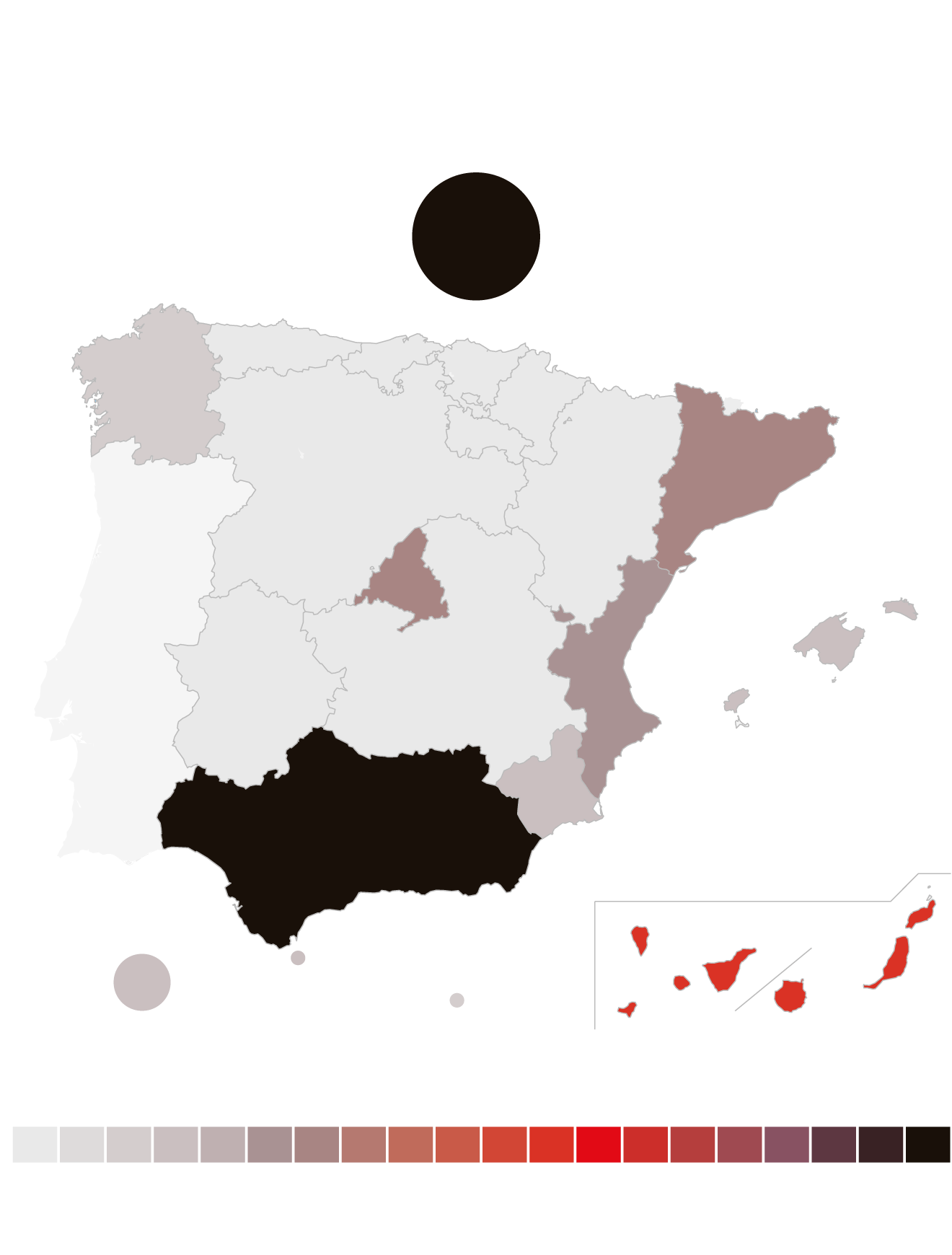 Él fue uno de los miles de muertos sin nombre que se localizan en nuestro país. A día de hoy, hay en España 3.517 cadáveres o restos humanos sin identificar, según datos del Ministerio de Interior. De estos, 1.925 fueron hallados antes de 2003. Las cifras de las dos últimas décadas por comunidades autónomas son elocuentes: Andalucía (417), Comunidad Valenciana (128), Cataluña (149). Aunque también sobresale el número de cadáveres/restos humanos localizados en las Islas Canarias (262) o en zonas con una elevada densidad de población, como la Comunidad de Madrid (139). «Un incremento muy importante se da en las zonas del litoral. Al ser una península, esta incidencia es más visible que en otros países», explica José Carlos Beltrán, jefe de la sección de Antropología Forense de la Comisaria General de la Policía Científica.
