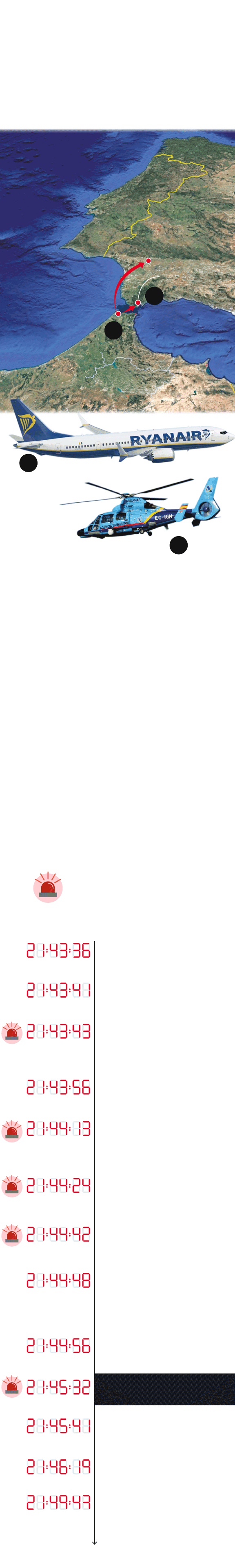 En contraste, el piloto de Ryanair sí estuvo en contacto permanente con los controladores y siguió al pie de la letra sus instrucciones, tanto en lo que se refería al rumbo como a la altitud, en la que hubo que hacer un descenso de 100 pies (algo más de 30 metros). A las 21:51:11 el comandante de la aeronave comercial ya informó que haría el correspondiente informe por el incidente, en particular por lo sucedido con el sistema de alerta en vuelo del helicóptero de Aduanas.