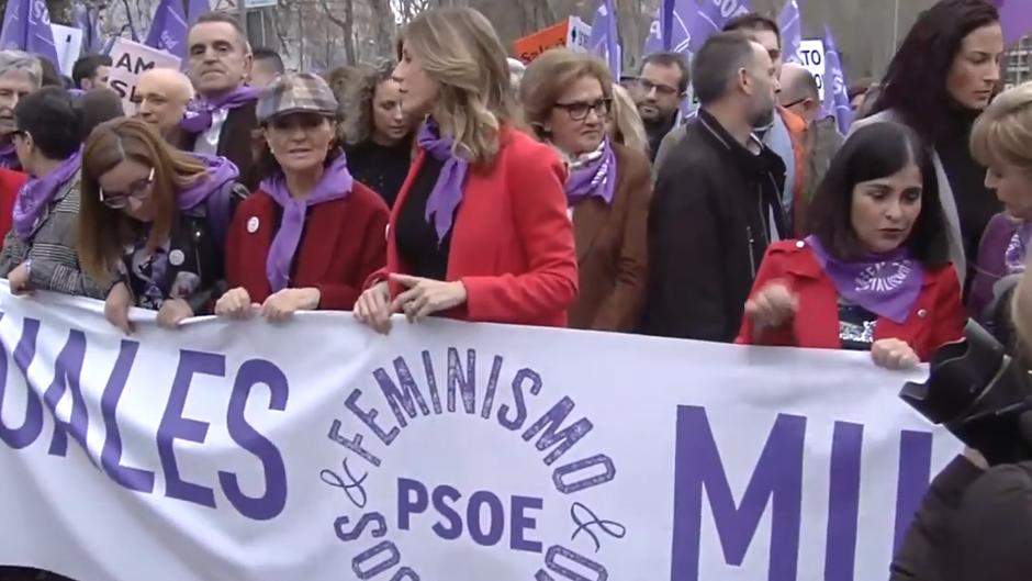 Otro caso positivo, externo al Ejecutivo pero muy relacionado con el mismo, es el de Begoña Gómez, esposa de Pedro Sánchez. Gómez coincidió con Darias y Calvo en la manifestación del 8 de marzo, en la que también participó Irene Montero.
