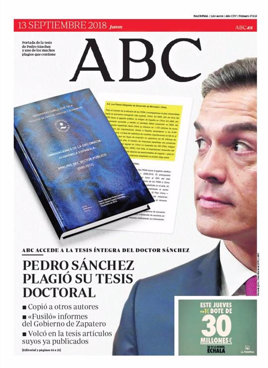 Iniciar sesiónAlfredo Rodríguez , ingeniero de Montes, decano del Colegio de Castilla y León y licenciado en Ciencias Medioambientales, ha denunciado la tesis de Pedro Sánchez ante el Comité Permanente de Integridad Académica de la Universidad Camilo José Cela . Sólo en ... un análisis preliminar ha detectado 122 errores importantes que deberían servir para «revisar o anular» el título de doctor que esta universidad otorgó en noviembre de 2012 al actual presidente del Gobierno .