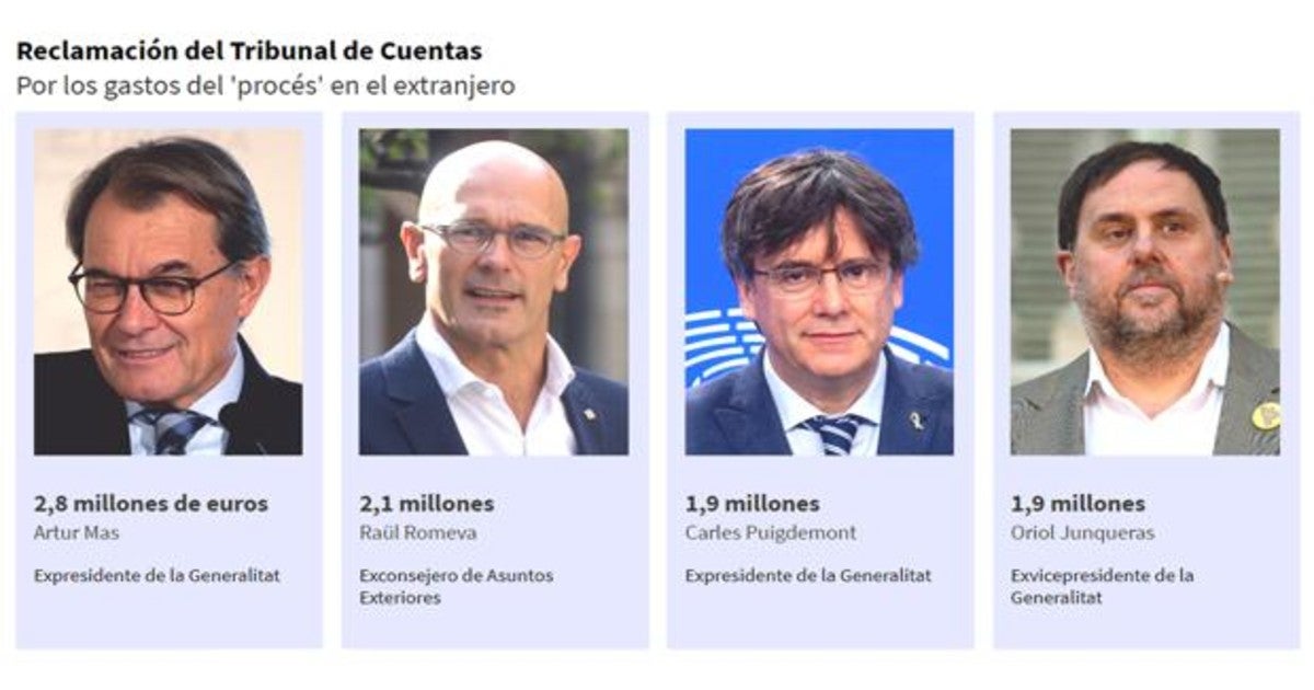 A medida que este martes se confirmaban las cantidades a devolver (el organismo constitucional del Tribunal de Cuentas repara el gasto indebido, ni multa ni sanciona), el independentismo aumentó la presión sobre el Gobierno para que, una vez concedidos los indultos a los nueve presos condenados por sedición, mueva ficha y libere, también, de responsabilidad económica a los responsables del gasto de dinero público destinado a la promoción en el extranjero del ‘procés’.