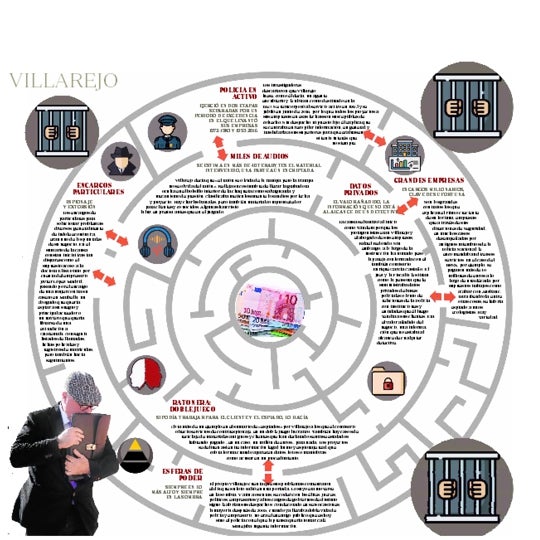 Este patrón tiene excepciones. La más clara es Carol, la pieza abierta a partir de los audios que grabó a la examante de Don Juan Carlos Corinna Larsen . Archivada ya dos veces, ha dado pie a que las fiscalías de Suiza y España investiguen el patrimonio del anterior Jefe del Estado. Aquí no hay un encargo claro y más bien parece que el cliente es el propio Villarejo. En plena guerra con el exdirector del CNI grabó aquellas cintas que él mismo vería como un salvoconducto. Sólo que llegado el momento, no le sirvieron para esquivar ni la detención ni la cárcel.
