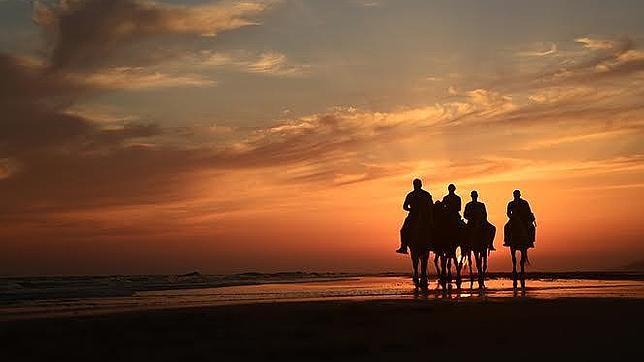 abc Playa, dunas, cotos, marisma… Doñana lo tiene todo para perderse y hacerlo de la mejor manera posible. Visitar el Parque Nacional y su entorno se puede hacer de muchas maneras. Pero hacerlo a caballo para contemplar sus atardeceres es una experiencia inigualable que hará el viaje irrepetible. Existe un buen número de empresas de turismo activo que organizan rutas a caballo que pasan por la incomparable orilla del mar de la Costa onubense, visitan las dunas móviles y se internan en el Coto, por lo que no quedará nada sin conocer. No es necesario tener conocimientos de equitación, y hay tantas modalidades de rutas como se quieran, de tal manera que por 25 euros ya podemos cabalgar en torno a uno de los más bellos paisajes de España.