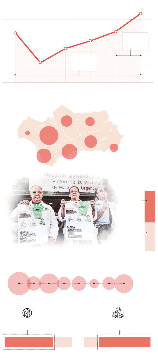 «Las agresiones a los profesionales del Sistema Nacional de Salud (SNS) continúan siendo una realidad y un problema de gran relevancia que no solo afecta a la integridad física, mental y al bienestar de las personas que desempeñan su actividad profesional en el ámbito ... sanitario, sino que también provoca una disminución de la calidad y de la cohesión del sistema sanitario en España». Ésta es la conclusión fundamental del 'Informe de Agresiones a Profesionales del Sistema Nacional de Salud 2024', publicado por el Ministerio de Sanidad y Consumo durante el año en curso y que está en consonancia con el aumento de este tipo de situaciones conflictivas en Andalucía en el último lustro largo.