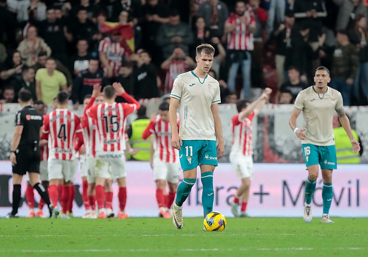 Al Córdoba le costaba mucho llegar al área rival en un tramo de partido cada vez más gris, con múltiples interrupciones. Ni el Córdoba apretaba para buscar el empate ni el Sporting estuvo cerca del segundo. Le servía el único gol de ventaja. También lo intentó a balón parado el Córdoba con un centro de Álex Sala que no logró rematar Antonio Casas. El cuadro asturiano provocó un doble susto con dos goles consecutivos por fuera de juego. Al menos, Álex Sala probó suerte con un disparo lejano que fue a puerta, pero el portero atrapó bien el balón.