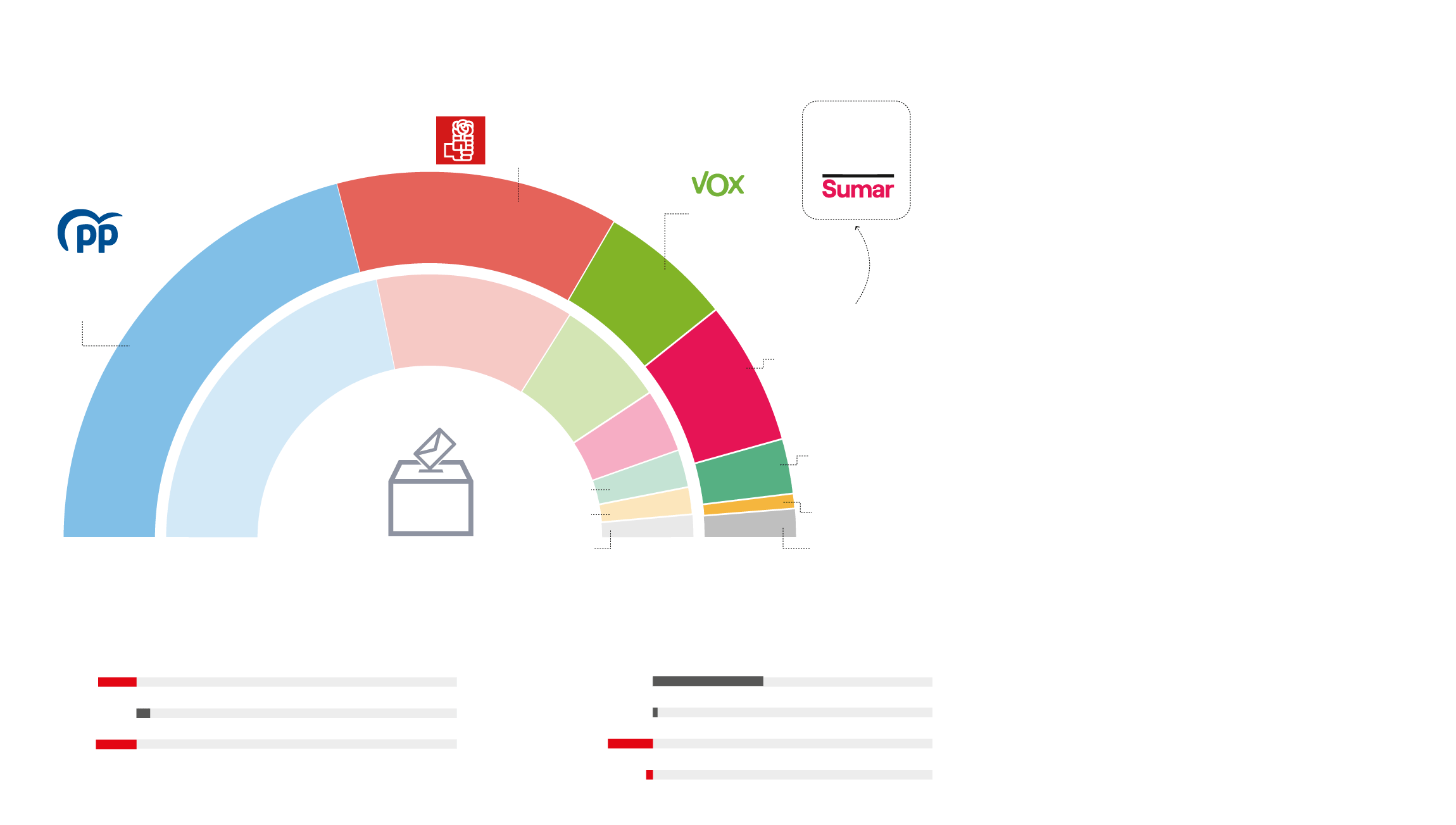 Porcentaje de voto y, entre paréntesis, número de escaños