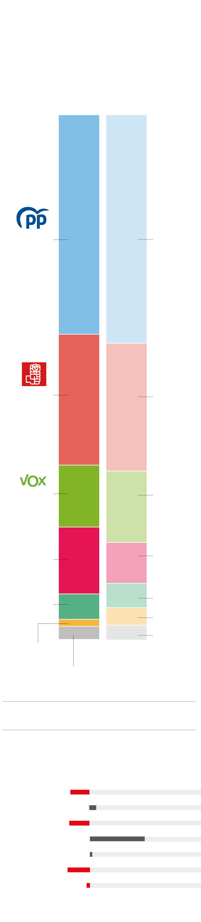 Porcentaje de voto y, entre paréntesis,