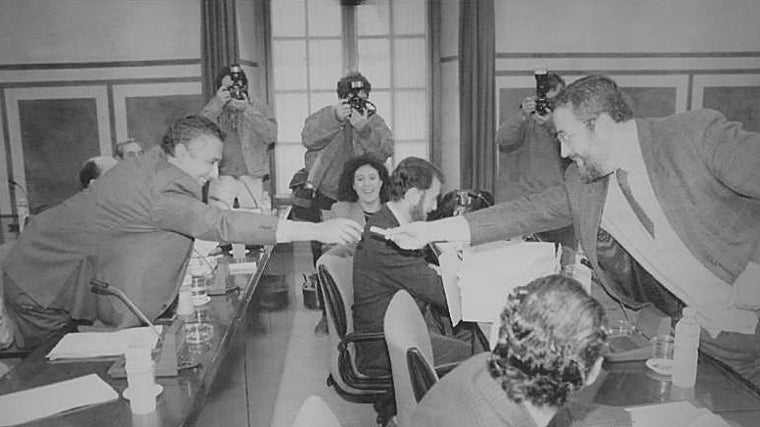 En ese período convulso dos políticos, el popular Javier Arenas y el comunista Luis Carlos Rejón se aliaron para votar conjuntamente y lograr hacer la vida imposible a Chaves, que finalmente se vio obligado a convocar elecciones. Ahora, más de treinta años después, salvando las distancias, otras dos formaciones políticas igualmente opuestas parecen coincidir cada vez más a la hora de votar y en su forma de actuar movidos por el afán de la polarización pero sobre todo por conseguir que Juanma Moreno pierda la mayoría absoluta en unas elecciones autonómicas que parecen no estar tan lejos.