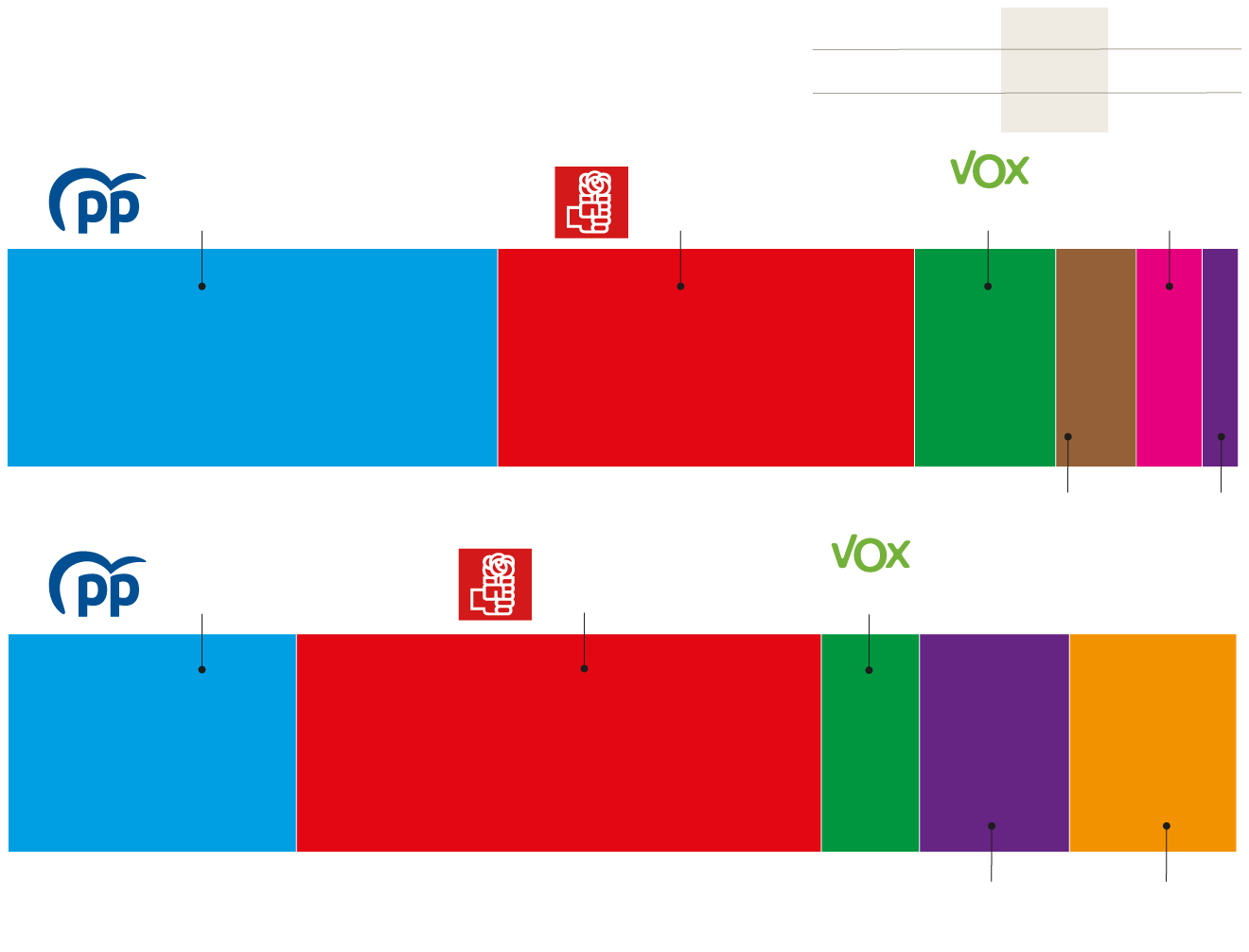 Los resultados de este domingo se ajustan a este reparto de fuerzas, lo que admite una doble lectura: los populares no incrementan su ventaja pero, en sentido contrario, los socialistas tampoco parecen recortar diferencias una convocatoria electoral más.