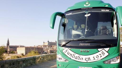 Este martes se ha presentado en sociedad el autobús del Toledo que llevará al equipo en todos los desplazamientos por la Península. Con el escudo del club y el patrocinio de Seguros Soliss estampados en la carrocería, el flamante vehículo, conocido ya en los ... ámbitos populares como el «pepino bus» por su forma y color, realizó un corto viaje por el Valle. El club anunció que, además, cuando termine la campaña de socios se estamparán en los laterales los nombres de todos abonados al club, cuyo número se espera que puedan llegar a los 2.000.