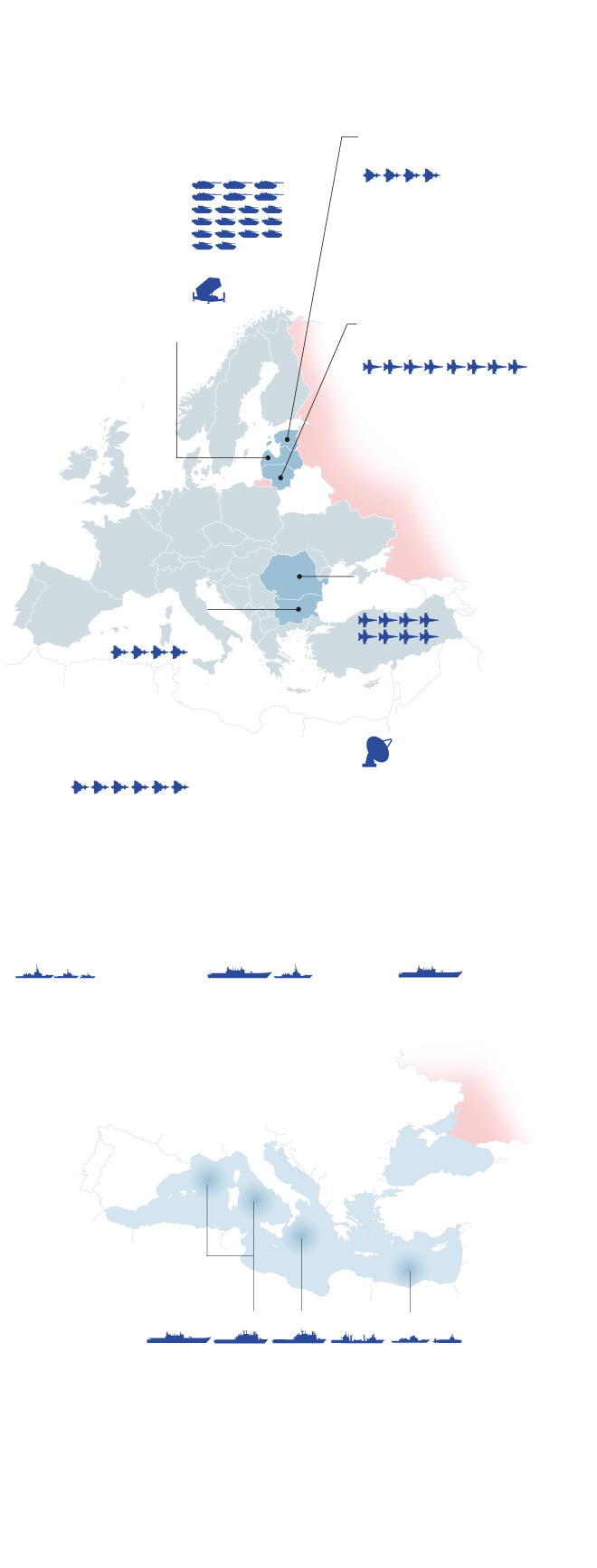 Reforzó su presencia en Letonia, participó en rotaciones aéreas en cuatro países y ahora envía un grupo aeronaval al Mediterráneo