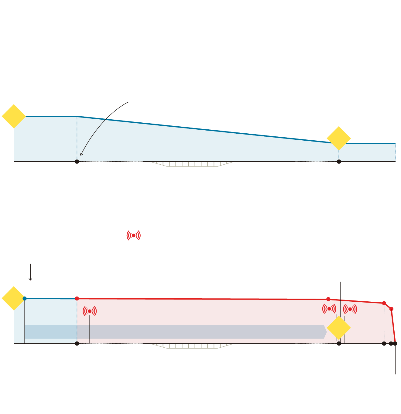 Se comienza a frenar antes del primer túnel hasta la salida del segundo