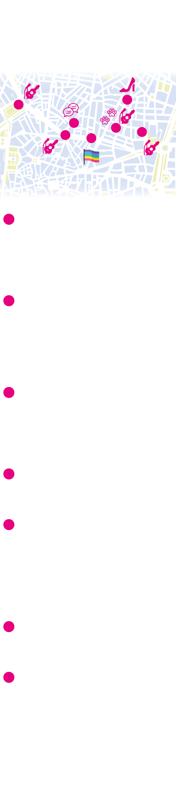 Ante los informes favorables de la Oficina de Actos en Vía Pública, el Ayuntamiento de Madrid también ha autorizado instalar escenarios, tarimas, equipos de sonido, imagen e iluminación en los siguientes emplazamientos solicitados por los organizadores del Orgullo: plazas del Callao, del Rey, de Pedro Zerolo, de Santa María Soledad Torres Acosta, Chueca y calle de Pelayo. En todos estos casos, la Policía Municipal, indica el escrito, «velará por que los actos del MADO de este año se celebren con normalidad y ajustándose al cumplimiento de la normativa municipal».