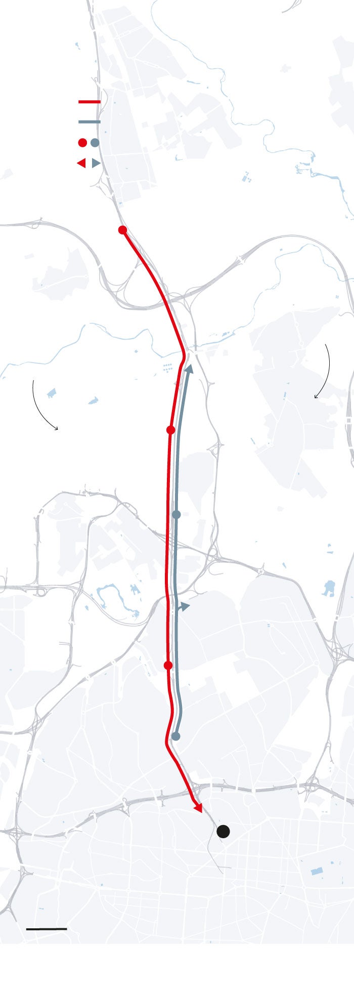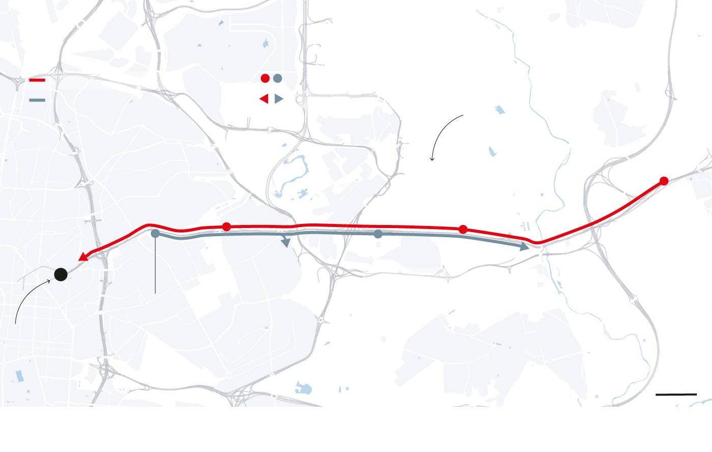Habrá, aseguran los técnicos, espacio suficiente para entrar o salir del carril por las zonas de embarque: 400 metros para entrar y 700 para las salidas. En el sentido de entrada a Madrid, habrá embarques en Torrejón, en San Fernando de Henares y el enlace de Rejas, y un tercer embarque tras el nudo de Canillejas. Desde cada uno de ellos, los autobuses circularán sin paradas, con una única salida al final, en Avenida de América. Ese desembarque final se producirá pasado el enlace de la A-2 con la M-30, que no podrán coger los vehículos que utilicen el Bus-VAO.