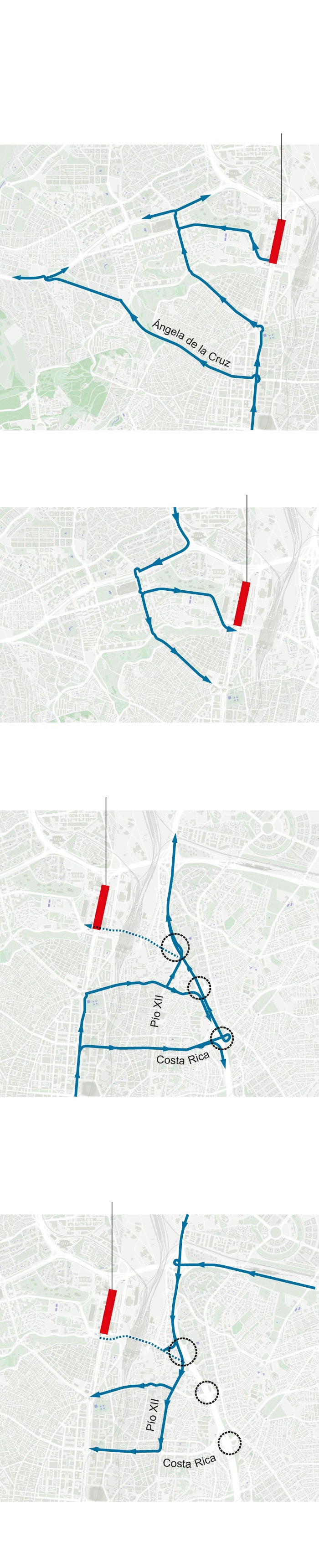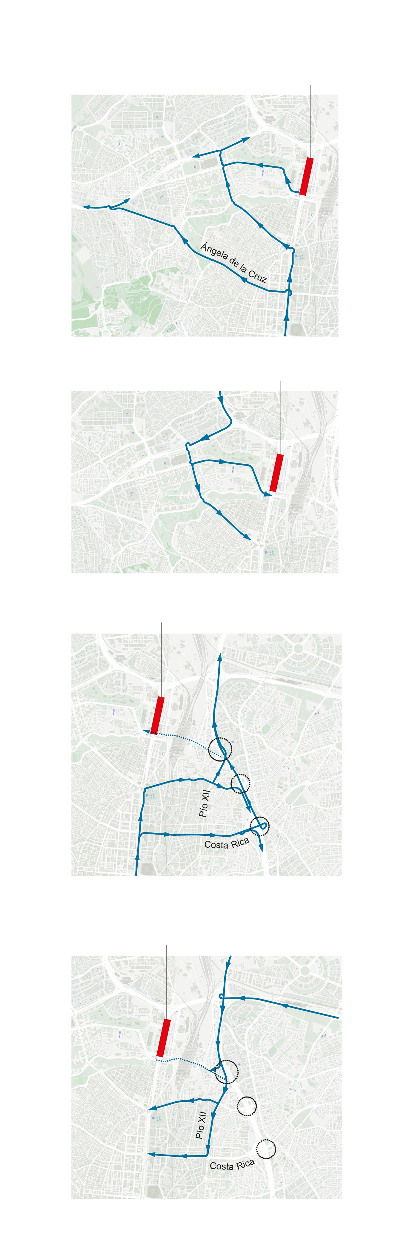 En el caso de los desplazamientos con destino a la A-1 o la M-11, los vehículos que partan desde la plaza de Cuzco podrán desviarse por la avenida de Alberto Alcocer y Costa Rica hasta la M-30. Desde la plaza de Castilla, las alternativas disponibles son las calles de Mateo Inurria, Caídos de la División Azul, Cuesta del Sagrado Corazón o la avenida de Pío XII, todas con conexión a la M-30.