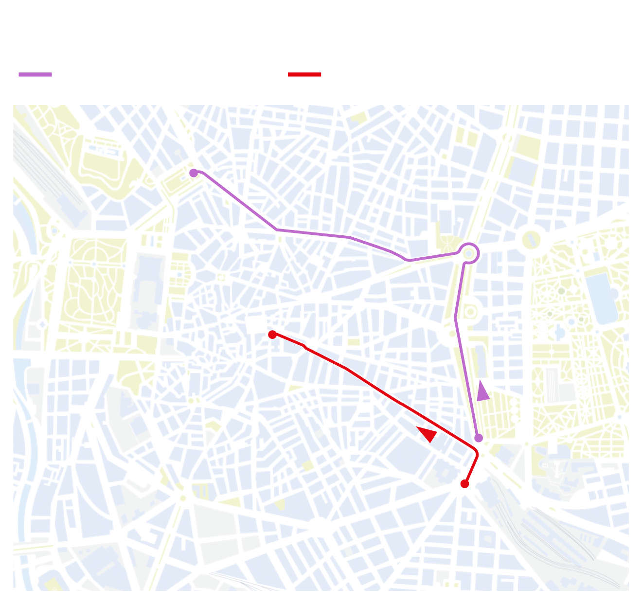 Y la registrada por el Movimiento Feminista de Madrid, también desde las 19 horas, que comenzará en la Plaza del Emperador Carlos V (Glorieta de Atocha) −dirigiendo la cola hacia la Ronda de Atocha y el Paseo de Santa María de la Cabeza−, y que discurrirá por la calle de Atocha para finalizar en las plazas de la Provincia y de Santa Cruz