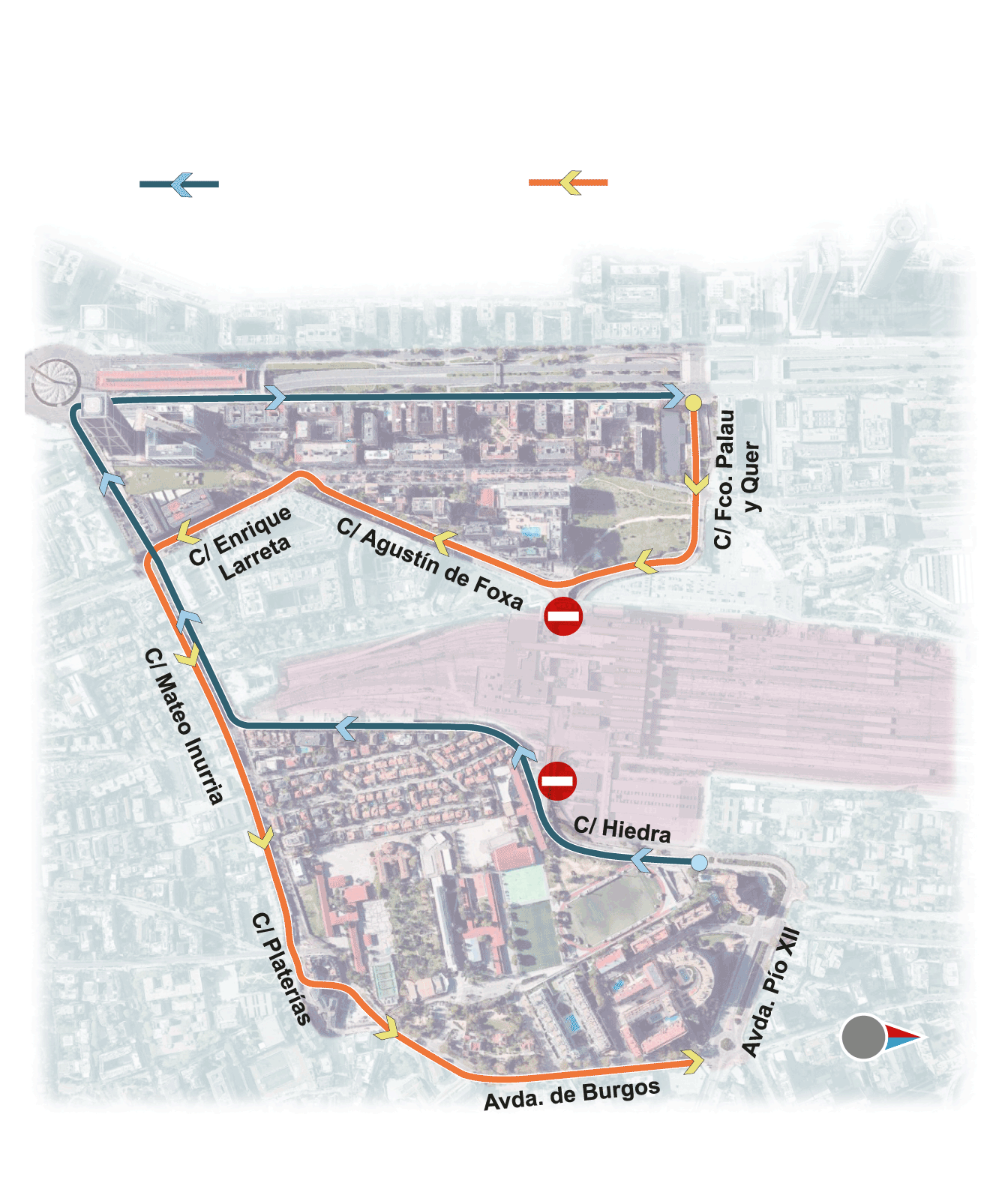 Por el contrario, los que quieran cruzar desde Mauricio Legendre, habrán de bajar por Agustín de Foxá y girar por Enrique Larreta para acabar en la calle de Mateo Inurria, la de Platerías y la Avenida de Burgos. Estos desvíos estarán convenientemente señalizados. Y también lo estará la reordenación provisional del tráfico y de algunos transportes de 'última milla', el trayecto final en la entrega de paquetería.