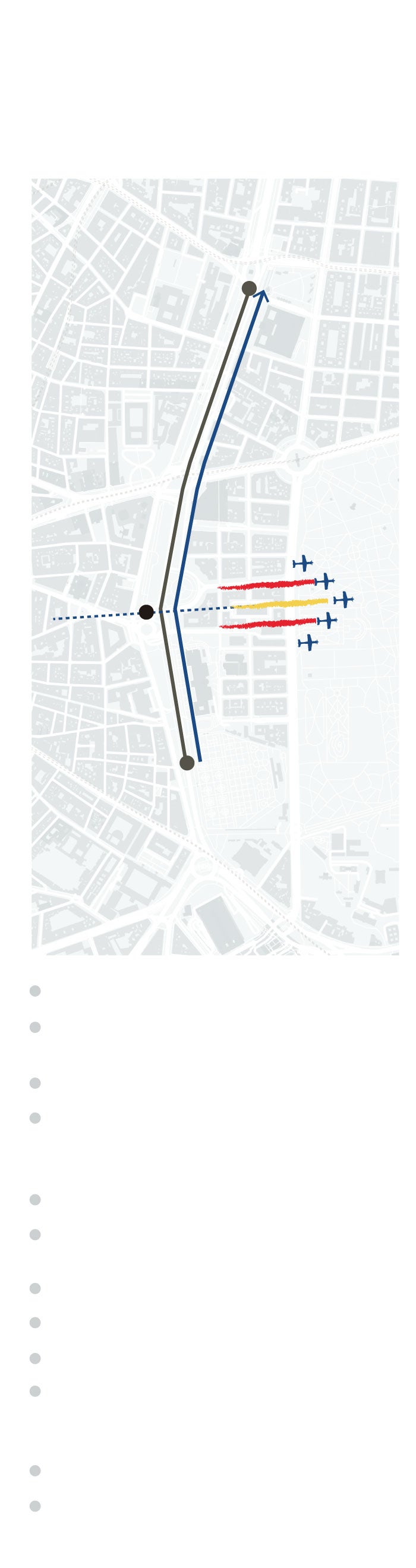 El recorrido se mantiene: desde el Jardín Botánico hasta la plaza de Colón. Y se espera que en la tribuna de autoridades, junto a la de la Familia Real, se sitúe el Gobierno, que compartirá grada con los representantes de los principales partidos políticos con representación en las Cortes Generales, a excepción de Vox, cuyo presidente, Santiago Abascal, anunció este sábado que estará junto a «la calle», pero no en los actos institucionales del 12-O para «no blanquear al Gobierno corrupto». Al final del desfile, asistirán a la tradicional recepción ofrecida por los Reyes en el Palacio Real por la Fiesta Nacional.