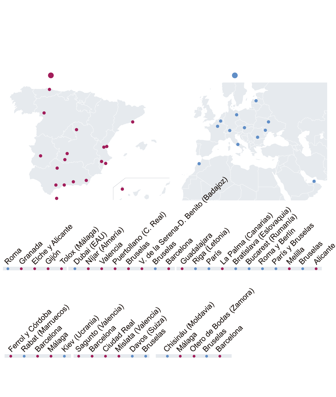 «Se han producido numerosos Consejos de la UE, reuniones de la OTAN y ha habido una intensa agenda bilateral del presidente del Gobierno, incluido su viaje a la capital ucraniana, Kiev», indican las mismas fuentes. Recuerdan, también, que «en este semestre se produjo la gira europea del presidente del Gobierno el pasado marzo para explicar la propuesta española ante la crisis energética, previa al Consejo Europeo, y la Conferencia de Presidentes de La Palma, además de la visita a Dubai, la Cumbre UE-África o la asistencia al Foro de Davos».