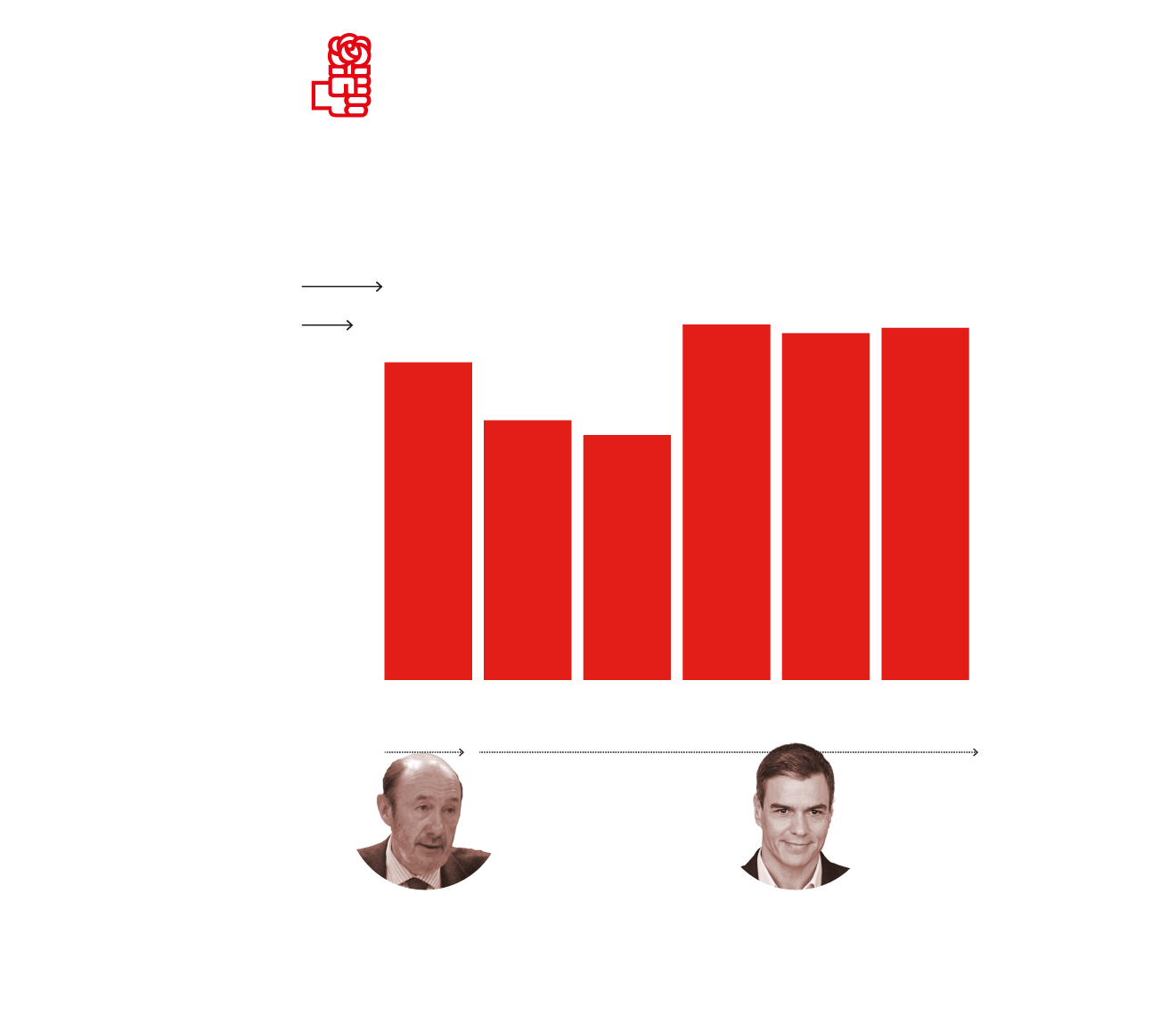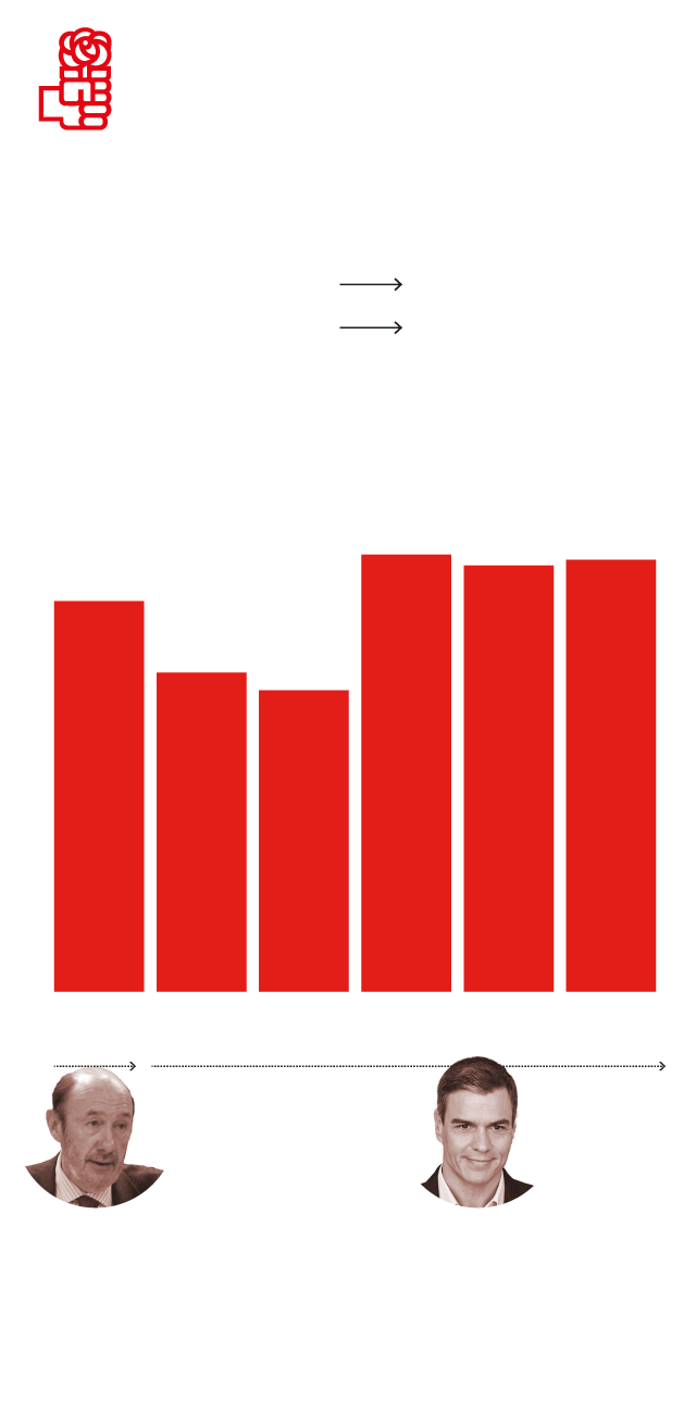 El PSOE que heredó de manos del fallecido Alfredo Pérez Rubalcaba, tras vencer en las primarias a Eduardo Madina, arrastraba una pérdida de apoyo ciudadano como nunca había visto el centenario partido desde la instauración de la democracia en 1977. En marzo de 2008, José Luis Rodríguez Zapatero revalidaba su mandato como presidente ganando las elecciones con más de once millones de votos, el 43%, no demasiado lejos, incluso, del histórico 48% de Felipe González en la mayoría absoluta de 1982.