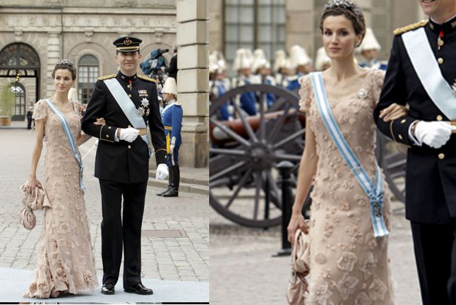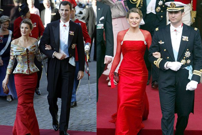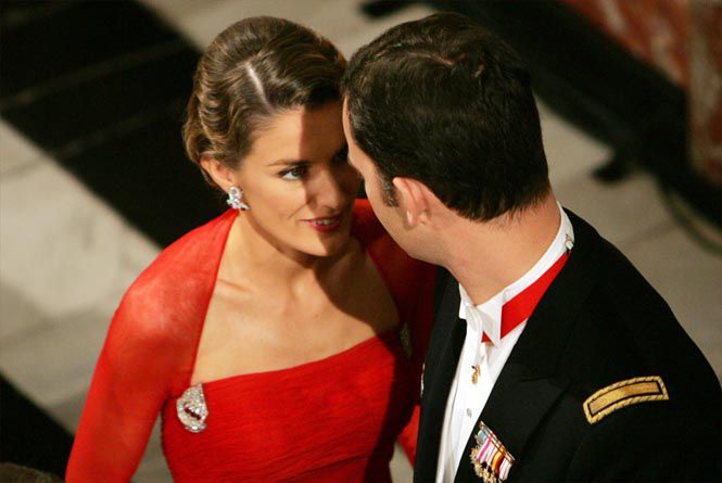 Doña Letizia deslumbró con un vestido de gala rojo español, diseñador por Lorenzo Caprile, inspirado en el glamour de las divas hollywoodienses. De corte sirena, escote palabra de honor y mangas de gasa superpuestas, realzaba la belleza y elegancia de la Princesa.
