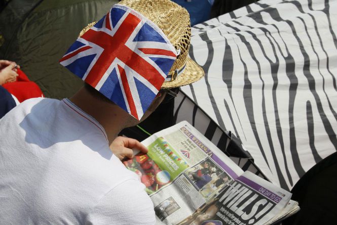 Los ciudadanos de Londres pintan sus caras con colores de la bandera británica.