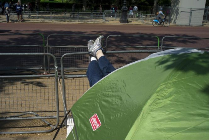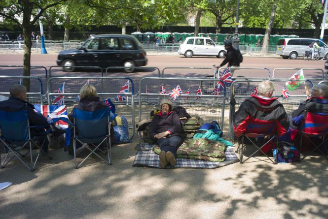 Duermen a la intemperie para coger sitio y ver pasar a los novios antes del matrimonio.
