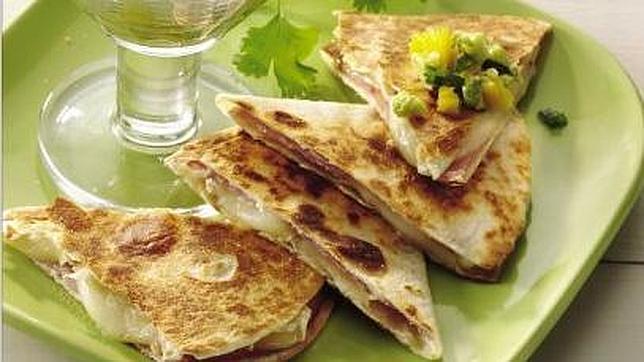 Un plato bien original y exótico pueden ser unas quesadillas con queso brie y mango que se pueden llevar envueltas en papel de aluminio de forma individual lo que facilita el reparto y luego se comen sin necesidad de plato ni cubierto como si fuera un sandwich pero mucho más sano.