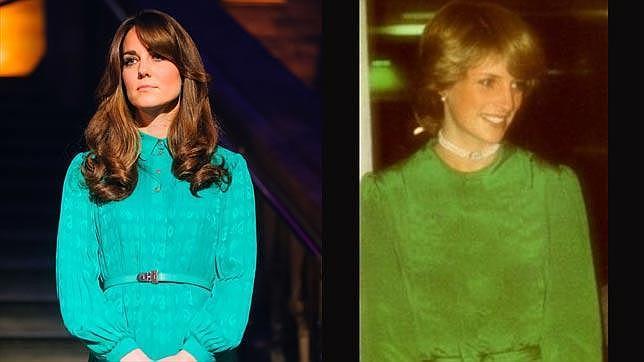 La manga globo con las muñecas ceñidas y el diseño abotonado y ajustado a la cintura con un fino cinturón, recuerdan mucho por ejemplo al vestido que la princesa Diana luce en esa imagen de archivo. Para más inri, sus posturas son casi idénticas, con las manos entrelazadas de forma recatada.