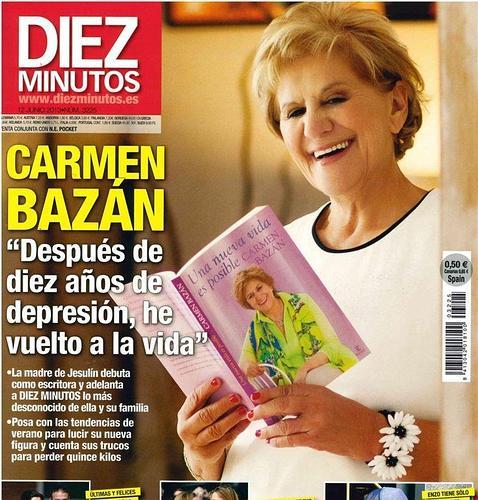 Carmen Bazán salta de nuevo a la palestra con la portada «Diez Minutos» de esta semana, en la que se muestra como una mujer renovada y recuperada tras su larga depresesión. La entrevista exclusiva coincide con la publicación de su propio libro, «Una vida nueva es posible», en el que habla de su dura experiencia y de cómo ha logrado resurgir de sus cenizas.