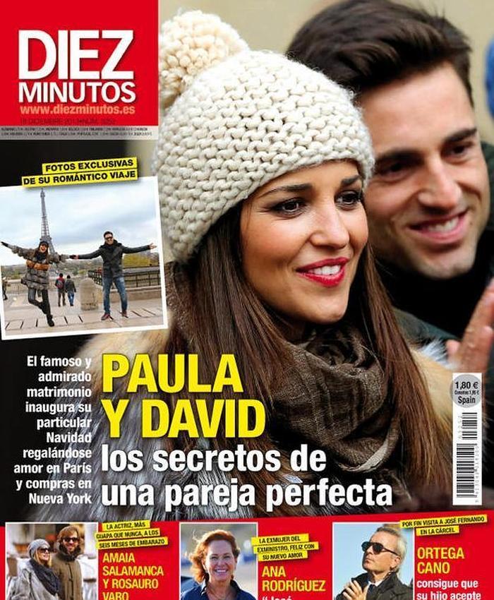 diez minutos Paula Echevarría y David Bustamante vuelven a acaparar otra portada, en este caso la de « Diez Minutos». La revista habla de ellos diciendo que son «el famoso y admirado matrimonio», que inaugura su particular Navidad regalándose amor en París y compras en Nueva York. También de viaje aparecen Amaia Salamanca y Rosauro Varo, muy enamorados e ilusionados en Venecia.
