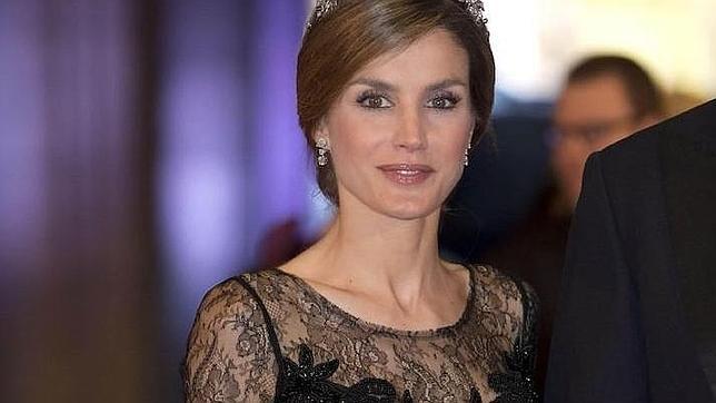 abc Se trata más o menos de un vestido de escote «palabra de honor» con un tul o encaje semi transparente que cubre hasta el cuello. Favorece a las señoras con un cuello relativamente esbelto y hombros estrechos. Doña Letizia usa a menudo este tipo de escote en actos oficiales de gala. (opción vestido negro o vestido azul)