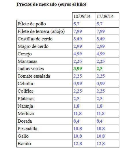 La semana pasada las judías verdes se vendían a 3,99 euros el kilo y esta semana, empieza a haber más cantidad por lo que podremos encontrarlas por 2,50 €/kilo. Nuestro frutero, Jesús, también nos asegura que es tiempo de coliflor porque empiezan ... a venir más grandes, aunque no haya variado el precio. En cuanto a frutas, se está terminando el tiempo del melón y la sandía pero se empiezan a consumir las uvas moscatel, las chirimoyas y algunos tipos de pera.