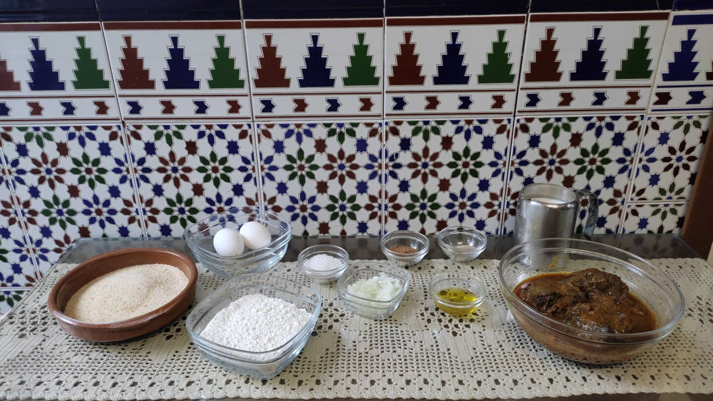 Se hace una bechamel con aceite, harina, especias y leche removiendo en un recipiente al fuego hasta que se quite el sabor a crudo de la harina. Cuando está en su punto se añade la carne de rabo de toro y se va espesando mientras se remueve.