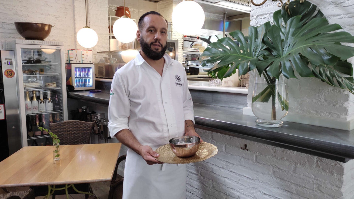 Si por algo se caracteriza Antonio López, responsable de Tellus, es por su gusto por la innovación y la investigación acerca de los productos del Valle del Guadalquivir para incorporar variaciones personales. Así lo muestra su mazamorra de queso de cabra caramelizada y acompañada de sorbete de manzana verde. Podrán probarla a la vuelta de vacaciones, puesto que estarán cerrados el mes de agosto.