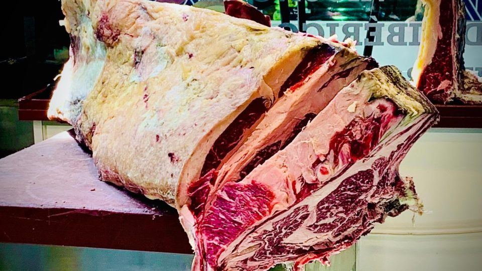 El siguiente compañero de terna es Jorge Cabello (JCM Carnes). Él es quien hace posible que Jesús Barranco , chef de Raza y Dehesa del Mercado Victoria, exponga unas piezas de campeonato en sus vitrinas para consagrarlas en sus brasas: vaca premium, pajuna, y buey de Cádiz dificultan decantarse por uno u otro pecado carnal.