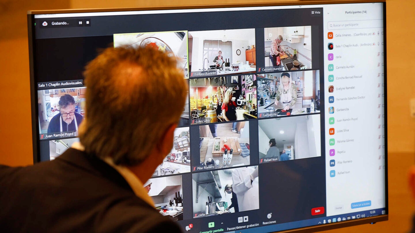 Antes del comienzo se contó con breves intervenciones de delegado territorial de Turismo de la Junta en Córdoba, Ángel Pimentel; la delegada de Turismo de la Diputación, Inmaculada Silas, el presidente de Hostecor, Francisco de la Torre y la concejala de Turismo Isabel Albás. En la sala no especialmente grande del restaurante se daban cita estas autoridades, fotógrafos, periodistas, cámaras, conferenciante y equipo de realización en algunos momentos hasta cerca de veinte personas, sin ventilación y sin poder mantener distancias…era la habitación Kitchen on Live de los hermanos Marx . En algunos momentos parecía posible haber oído la bocina de Harpo. Resulta curioso que un evento que se desarrolla on line por razones de la pandemia se haya permitido organizar la parte principal en un lugar así. Varios periodistas se negaron a entrar y obligaron a las autoridades a tener en exteriores un momento para los medios de comunicación ante la insólita y contradictoria situación. Algo de gastronómico tuvo al estar los presentes como sardinas en lata.