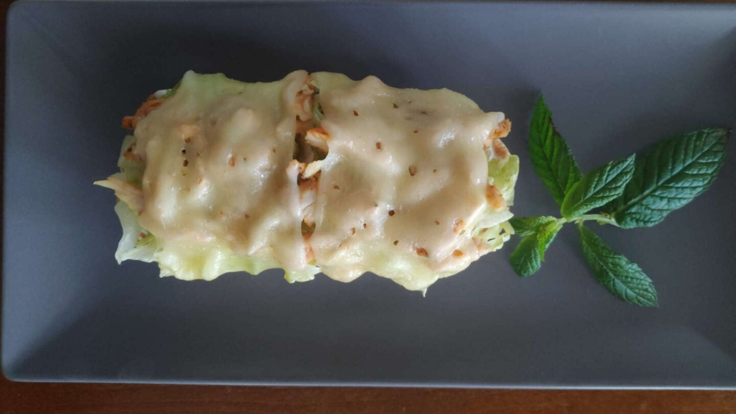 Hamburguesa de cerdo en pan jarote elaborada al horno, queso de oveja con trufa negra y salsa de la casa, acompañado de sorbete de ajo blanco de almendras.