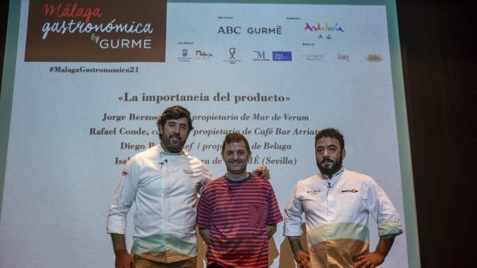 Diego René fue otro de los integrantes de esta mesa, un cocinero joven con raíces alicantinas que gestiona los fogones del restaurante Beluga (Parque de las Flores, 3. Málaga) y que se ha formado en países como Argentina, Inglaterra o Francia y en cocinas como la de Martín Berasategui. Diego reconoció con orgullo que el 90% de los productos que emplea en su restaurante son andaluces pero subrayó la importancia de la honestidad en la hostelería actual. «Hay veces que tienes que traer los productos de otras zonas y hay que saber explicarlo», indicó.