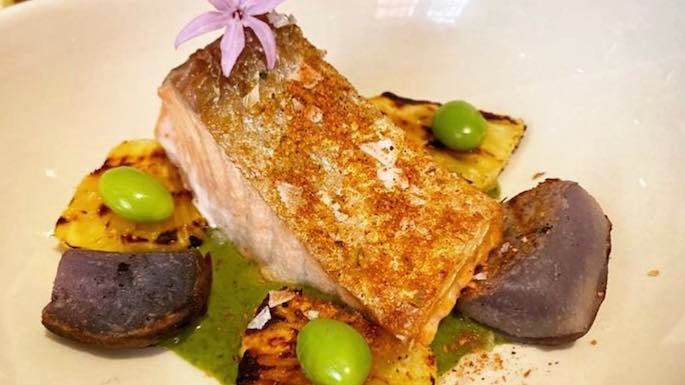 Respecto a la cocina, innovación y tradición que se dan la mano con Sergio y su equipo a los fogones . Opciones novedosas como los callos veganos de setas de temporada, con chorizo y morcilla vegetariana; el atún encebollado ‘estilo Magna’ con reducción de cerveza; salmón asado cajón sobre piña a la parrilla, escabeche de coco, estilo sureño y edamame; coquelette asado al carbón ‘estilo Jerk’ jamaicano con arroz con coco y alubias y boniato frito; guiso de calamares; lomo de ternera rubia gallega con puré de patatas y setas de temporada… Dos menús degustación a elegir –corto y largo– y también está la posibilidad de comer a la carta.