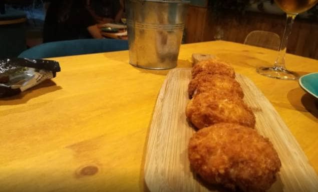 Y terminamos con las que no podían faltar en esta lista: las croquetas de puchero. En Sarmiento apuestan por la reinterpretación de platos tradicionales andaluces y las brasas, pero estas croquetas figuran como lo más demandado.