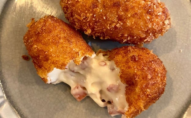 Porque una croqueta requiere, para empezar, buenos ingredientes. Sin ellos, es imposible llegar a un buen resultado. Ya sean un jamón ibérico de calidad, unas gambas o un carabinero , una jibia o la pringá de un buen puchero. Incluso la mantequilla o el aceite o la leche o el caldo que intervengan en la masa, todas tendrán una relevancia importante en el éxito final. Requiere, en segundo lugar, de mucha paciencia . La cremosidad de esa masa depende en buena medida de armar una bechamel o una velouté paciente que algunos remueven durante horas. Por no hablar de la paciencia que requiere formarlas, darles forma y empanarlas. Y necesita, por último, de una extrema pericia para freírlas a la temperatura adecuada de modo que no se abran, que queden melosas sin deshacerse y bien doradas sin absorber más aceite del necesario.