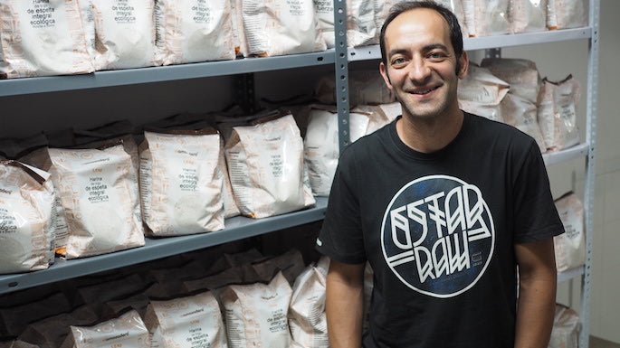 Estos son los ingredientes para un kilo de producto : 550 gramos de harina, 170 gramos de masa madre, 330 gramos de agua y 10 gramos de sal. “Se baja la cantidad de agua y de harina porque la masa madre ya la lleva”, nos dice Andrés Bonilla .