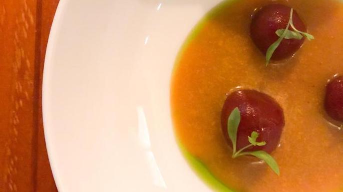 Hace justo un año que abría las puertas Boho Club y en este tiempo en funcionamiento la sopa de maíz se ha posicionado como uno de los platos que más gusta tanto a Diego del Río, su artífice, como a los clientes que visitan el restaurante. Del Río comenta que las mazorcas de maíz se asan al horno de leña y eso imprime a este guiso un sabor peculiar. Se va aligerando con los cítricos y con el toque de chile que tiene. El resultado es una sopa refrescante que en boca es agradable, resultando una textura agradable, sedosa y muy suave. Sea campaña con las verduras encurtidas y un mojo de aguacate asado que, todo combinado, da un resultado de 10. Sí. Esta es una de nuestras sopas frías favoritas que se pueden encontrar en restaurantes de la Costa del Sol.