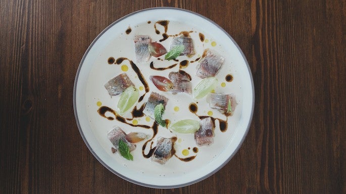 8. Ajoblanco y sardina ahumada con higos, Lobito de Mar (Marbella)