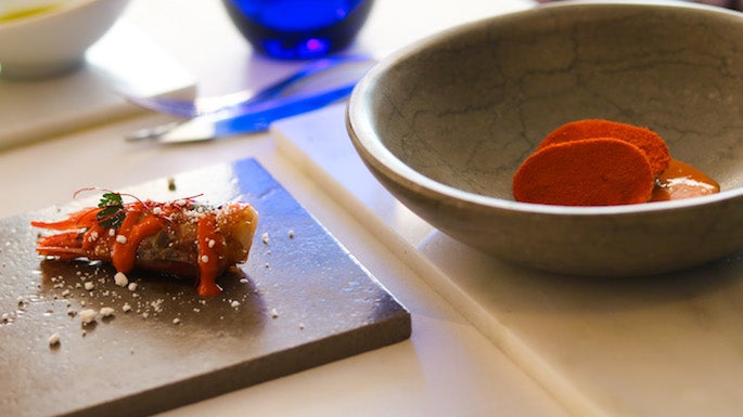 4. Quisquillas, jugo picante de tomate verde y harissa, Bardal (Ronda)
