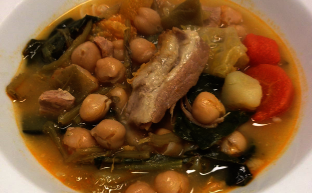 Por lo demás se trata de un cocido con garbanzos que lleva tagarninas, patatas y carne, magro de cerdo y tocino de la papada. En la Venta Los Atanores lo saben bien y esta propuesta de cuchara está entre las favoritas de sus clientes.