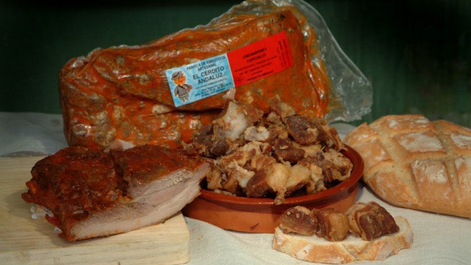 Como señalábamos anteriormente, la carne mechada, los chicharrones y el chorizo casero –“muy típico de Benaoján”– son las referencias estrella del catálogo de El Cerdito Andaluz. A esto hay que añadir la morcilla rondeña , “que también gusta muchísimo”, y la bondiola , premio al ‘Mejor Embutido’ concedido por la Junta de Andalucía a El Cerdito Andaluz en su última convocatoria –Premios a los Mejores Productos de los Espacios Naturales de Andalucía ‘Andanatura’. Esta es una elaboración preparada con el cabezal del cerdo, “la parte más jugosa. Se embucha con especias y se embute en tripa natural, que va curada”. Noelia añade que, básicamente, es “como una caña de lomo pero en redondo” y se conoce sobre todo en Benaoján y alrededores, de donde es típica.
